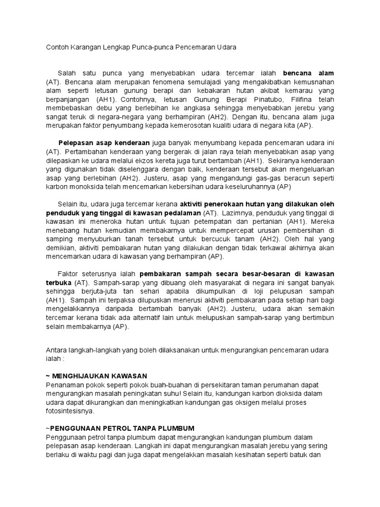 Antara satu punca pencemaran alam sekitar yang diberikan ialah kenderaan. TUGASAN-GEOGRAFI-Pencemaran-Alam-Sekitar-Udara-Air-Tanah-Bau-panduan-pelajar was published by epalcomel on 2016-12-23. Keadaan ini boleh menyebabkan kemudaratan dan ketidakselasaan kepada manusia atau organisma hidup yang lain serta merosakkan alam sekitar apabila dibebaskan ke atmosfera.
