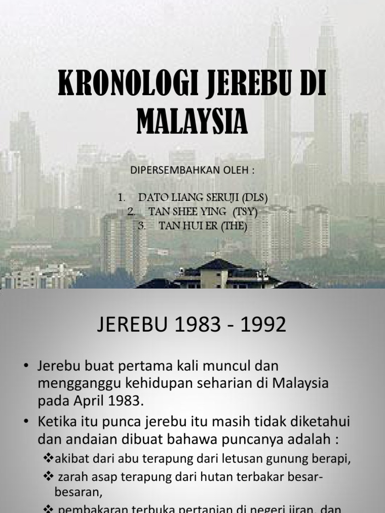 Jerebu 1997 di malaysia. Darurat Parlimen Batu Sapi Sandakan Sabah 2020. Lepas tu Kuala Selangor dan Pelabuhan Klang pada 11 Ogos 2005 IPU melebihi 500 dan terakhir di Muar dan Ledang Johor pada 23 Jun 2013 IPU melebihi 500. Pergerakan angin yang membawa debu akibat pembakaran terbuka di bahagian negara jiran Sumatera dan Kalimantan Indonesia menjadi punca ketika itu.